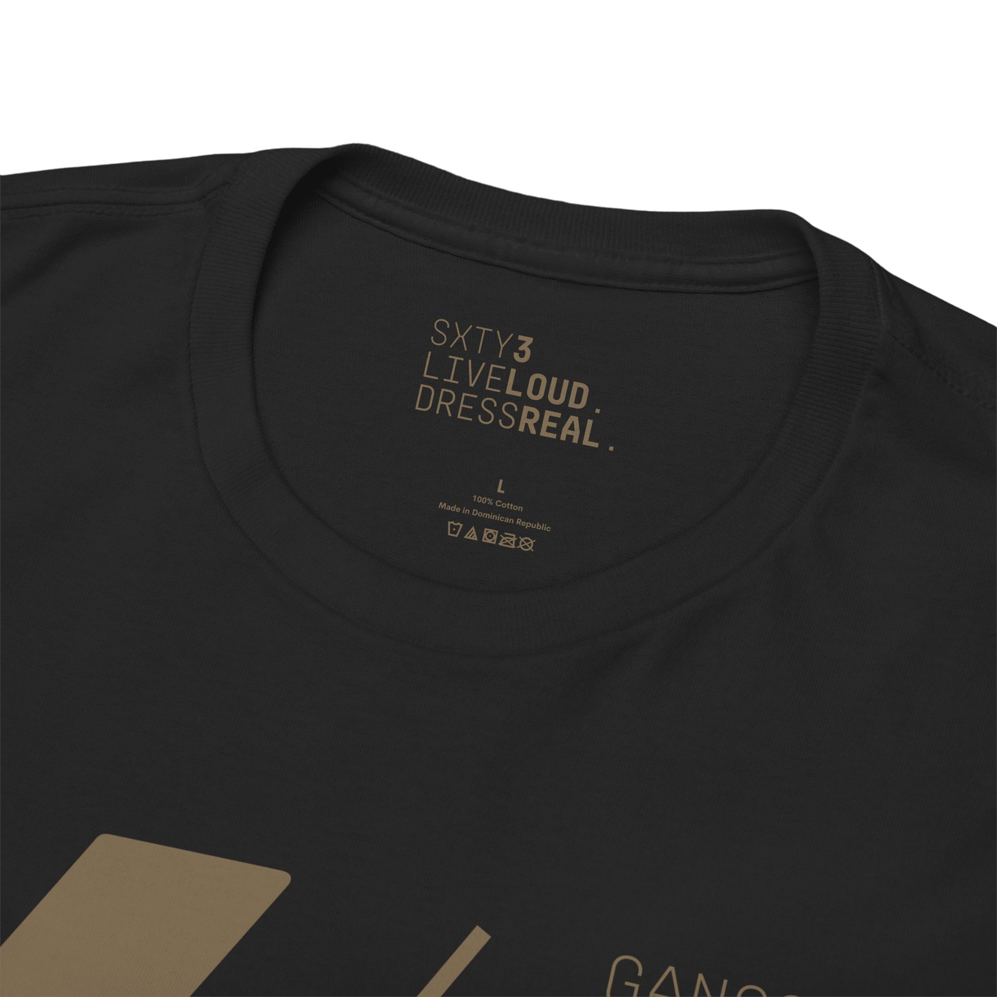 Dieses SXTY3 T-Shirt setzt ein starkes Statement, ohne seinen minimalistischen Charakter zu verlieren. Der großflächige „63“-Print in mattem Gold zieht den Blick sofort auf sich – klar, grafisch, kompromisslos modern. Die schräge Trennlinie verstärkt den dynamischen Look und gibt dem Design seinen markanten Street-Edge. Direkt daneben sitzt ein kleiner „GANGGANG“-Schriftzug, der dem Shirt eine subtile, urbane Attitüde verleiht.