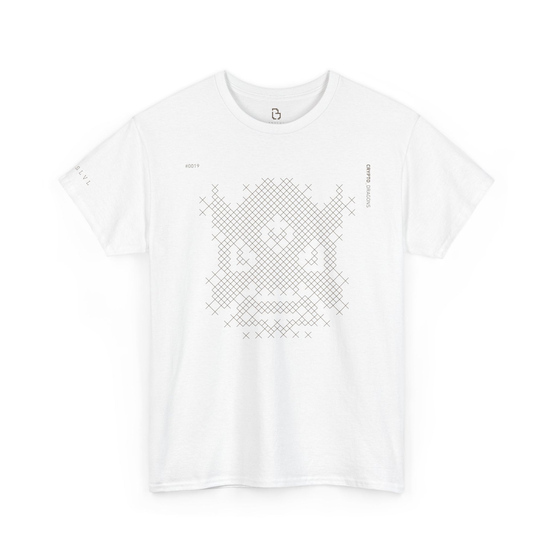 Das BNSLVL Crypto Collection T-Shirt – Dragon #0019 verbindet moderne Streetwear-Ästhetik mit digitaler Kunst. Das schwarze Premium-Shirt präsentiert ein stilisiertes Drachenmotiv im charakteristischen BNSLVL-Cross-Grid-Design – subtil, edel und futuristisch zugleich.