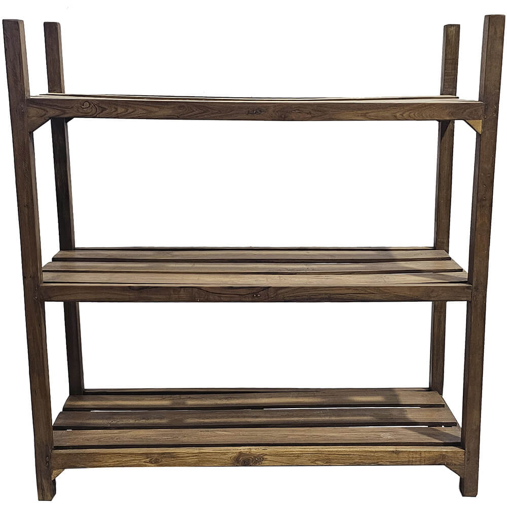 Dieses alte Holzregal strahlt rustikalen Charme und natürliche Authentizität aus. Es ist aus Altholz gefertigt, wobei jede Planke mit ihren individuellen Farbnuancen, Maserungen und der Patina ihre eigene Geschichte erzählt. Das schlichte Design mit drei geräumigen Ablagen macht das Regal sowohl funktional als auch dekorativ. Es passt perfekt in viele Einrichtungsstile von rustikal über industriell bis modern und verleiht dem Raum Wärme und Charakter. Verwenden Sie es zur Aufbewahrung von Büchern, Pflanzen, Küchenutensilien oder als schönes Ausstellungsregal in Ihrem Geschäft oder Café.