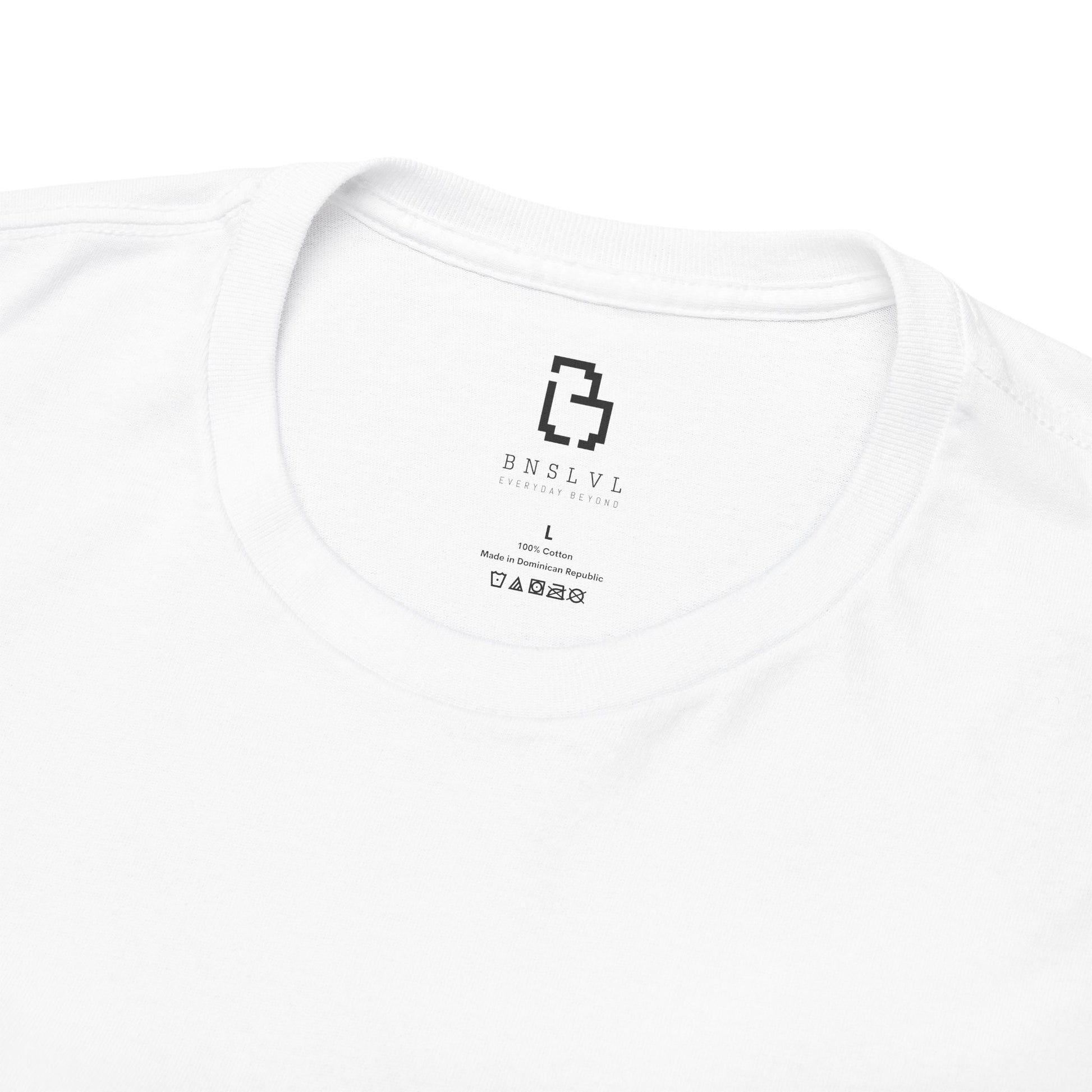 Die Vorderseite bleibt bewusst reduziert: ein dezentes Brustlogo sorgt für Balance und Understatement, während der Rücken klar kommuniziert, wofür BNSLVL steht – Beyond Everyday. Bonus Level Activated.