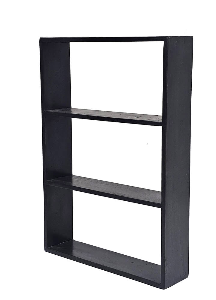 Dieses schwarzlackierte Wandregal aus Holz ist ein kleines, aber vielseitiges Möbelstück mit vielen Einsatzmöglichkeiten. Es besteht aus massivem Holz, ist tiefschwarz lackiert und wird mit zwei kleinen Eckbeschlägen geliefert, sodass es ganz einfach – vertikal oder horizontal – aufgehängt werden kann. Sie entscheiden.