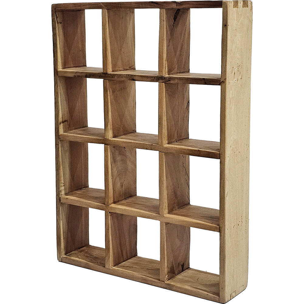 Dieses Regal mit Fächern aus Altholz ist ideal für alle, die ihre Lieblingsstücke stilvoll präsentieren und trotzdem für ein wenig Ordnung sorgen möchten. Gefertigt aus massivem, hellem Holz mit schöner, natürlicher Maserung, ist es in 12 Fächer unterteilt, sodass sich Tassen, Gewürze, kleine Flaschen oder Dekoobjekte gut organisieren lassen.