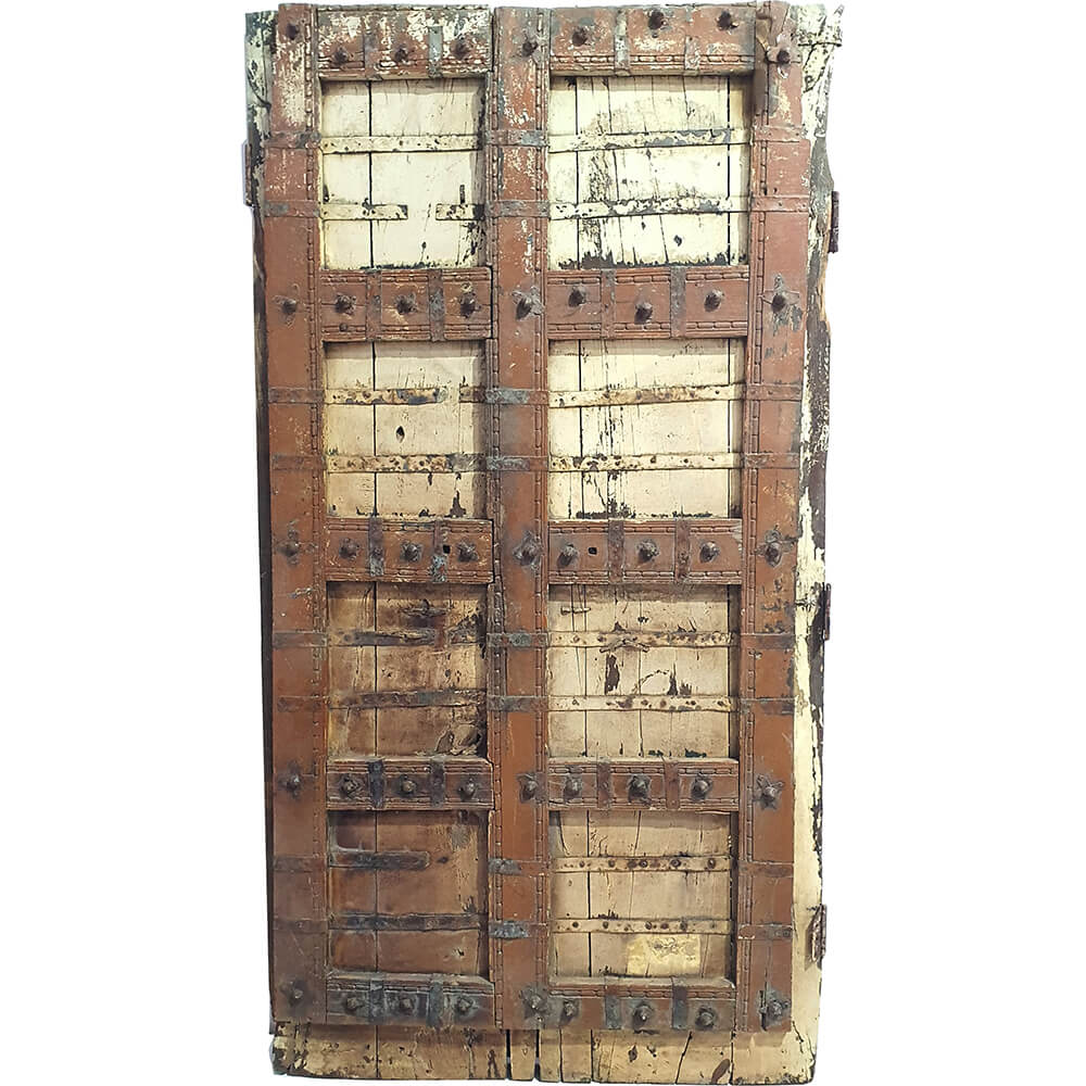Diese beeindruckende alte Holztür ist ein echtes Stück Geschichte mit ihrer robusten Konstruktion und authentischen Patina. Die massiven Holzrahmen mit sichtbaren Bolzen verleihen ihr einen rohen, industriellen Look, während die abgenutzten weißen Bretter einen Hauch nostalgischen Charme hinzufügen. Die Tür kann als charaktervolle Wanddekoration, cool Kopfteil verwendet werden, oder sogar zu einem spektakulären Tisch umgebaut werden. Die Holztür strahlt Authentizität aus - perfekt für alle, die Möbel mit einer rohen und ehrlichen Vergangenheit lieben.